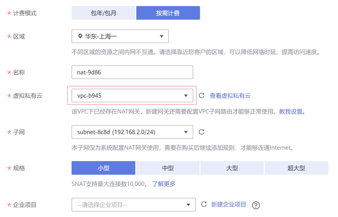 2.創(chuàng)建NAT網(wǎng)關,具體步驟詳見購買NAT網(wǎng)關。